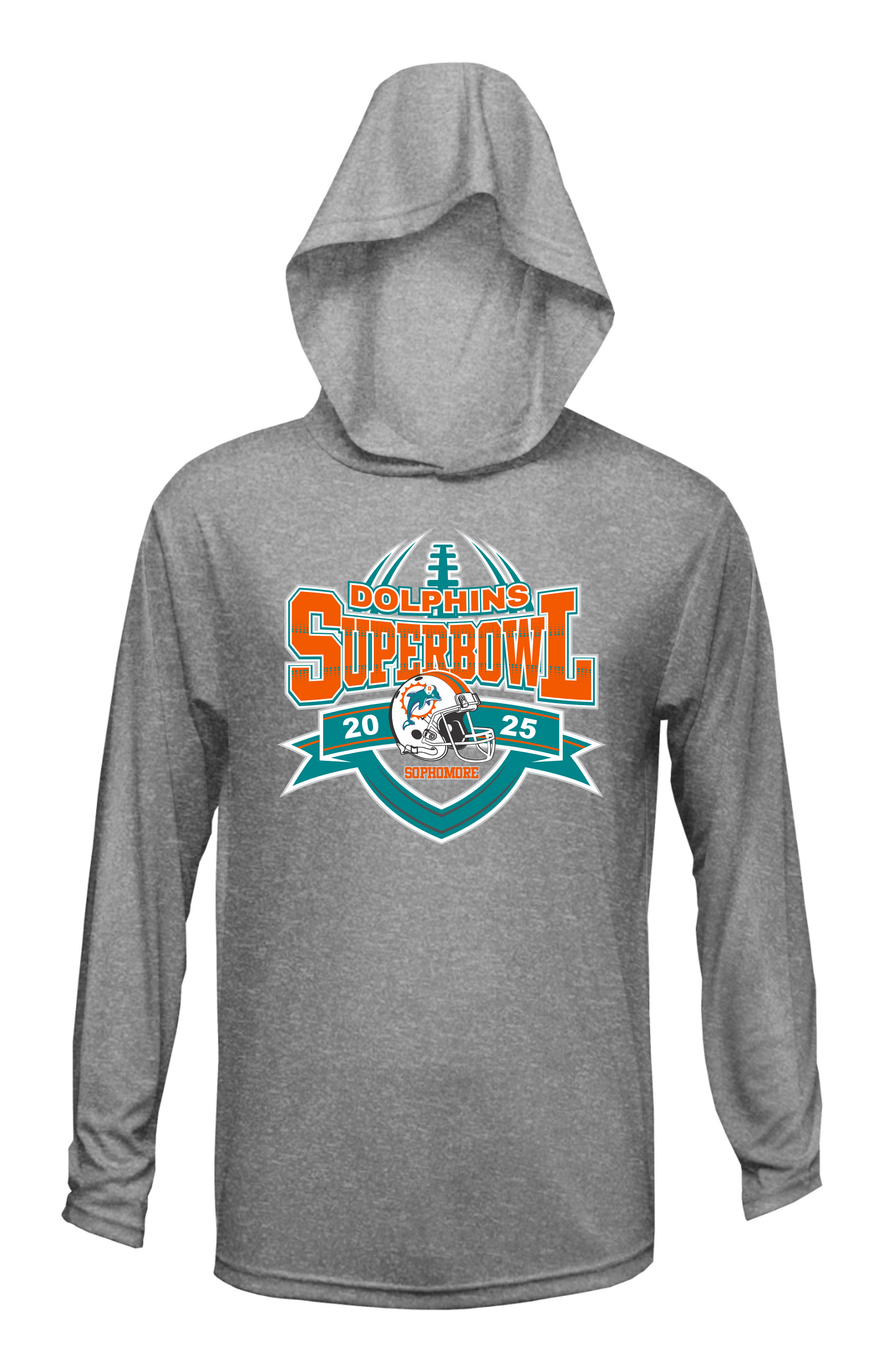 SOPHOMORE DOLPHINS SUPERBOWL HOODED DRI FIT LONG SLEEVE SHIRT